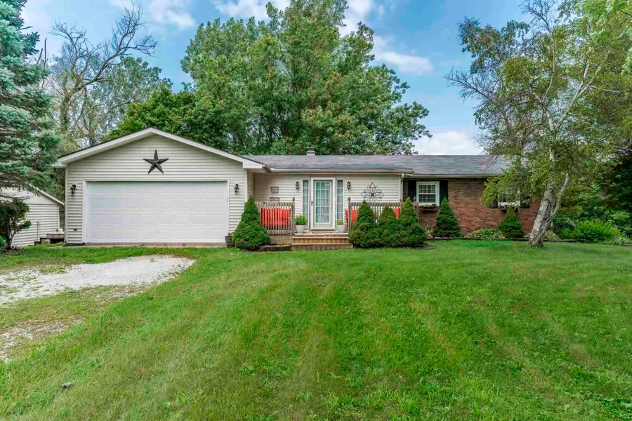 Contingent Accepting Back Up Offers.....Country Charmer situated on 3 acres with a pond! Home has a rustic feel with knotty pine naked plank flooring throughout the main living room, hallway and dinning room, and a spacious laundry room off of the side entrance, on the main level. The kitchen is open to the dining room which has patio sliders leading out to the deck. The deck over looks the pond and a private back yard. The living room has wood beams and is warm and inviting. The main floor also has 3 bedrooms, plus a den that could be a 4th bedroom if a closet is added, and a full bath. The basement has an oversized family room, with a full size kitchenette with plenty of cabinetry, full size range, and white subway tile backsplash. There is a full bath with walk-in shower on this level, and 2 storage rooms, one is set up as a sleeping room. A door located in the lower level mudroom allows for easy access to the back yard to enjoy all that 3 acres has to offer. The attached garage space is the ideal workshop and the oversized detached garage is perfect for overflow storage.