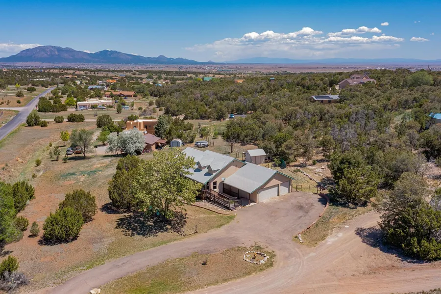 Under Contract Taking Backup Offers! Experience the allure of rural living in this beautiful Northern New Mexico-style home. This spacious property offers ample room for comfortable living, both indoors and outdoors. Step inside to find high ceilings that create a bright and airy atmosphere, complemented by new carpet and fresh paint. Recent updates include modernized bathrooms and resurfaced countertops, adding a fresh touch. The huge downstairs family room provides a perfect space for relaxation and entertainment. Located less than a mile from hiking trails and open space, this home invites you to embrace the natural beauty of the surroundings. Enjoy the convenience of paved roads leading up to the driveway and take advantage of the oversized 3-car perfect for extra storage.