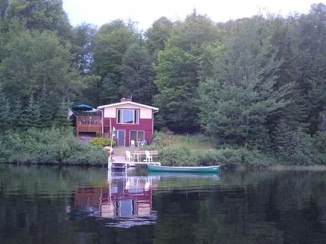 Michigan Lake Home For Sale - This home has over 200 feet of frontage on beautiful Beaufort Lake in south-eastern Baraga County. This scenic 462 acre lake, with a maximum depth of 35 feet, is part of the Three Lakes Chain. This lake contains Northern pike, Perch, Burbot, Rock bass and lots of Walleyes and Smallmouth bass. Boats, and pontoons are popular, and swimming is great in this lake's clear water! The lovely cabin features two floors of living space. Upstairs is a living room that features a natural stone fireplace and great views of the lake, a bedroom, a 9x10 sleeping nook, and full bath. Downstairs is a large recreation-dining area with a second natural stone fireplace, and patio doors for access to the patio. A galley-kitchen, second bedroom, and utility-storage room complete this floor. There is a 10x26 deck for outdoor relaxation, and a 24x30 detached garage for vehicle and recreational toy storage. The furnishings may be negotiated separately. The home has year-round access, has a metal roof, and satelite TV (DirecTV) is installed (can be activated at any time). The garage has many electrical outlets, and the dock also has electricity. Ice fishing and snowmobiling are great in Winter. The Three Lakes Chain is made up of Lake Ruth, the most northern of the lakes, that covers 192 acres and is about 36 feet deep. George, in the middle, is the smallest of the chain, covering 160 acres, and has a maximum depth of 40 feet. The southern most lake, Beaufort Lake covers 462 acres and is about 35 feet deep. The Spurr River exits the north end of this lake and it's long channel leads into Lake Michigamme.