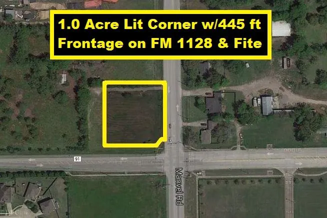 1.0 Acre Lit Corner w/225 ft FM 1128 Road Frontage & 220 ft Fite Road Frontage. 1.8348 Acre Lit Corner Wrap w/Access from both Fite Rd & FM 1128 also available for sale separately or combined for a total of 2.8348 Acres! City Utilities! Caddy-corner to Rogers Middle School! By Cullen Parkway, FM 518/Broadway, Dads Club Community Park, Perry Miller JH & Pearland Cinema. Close to Silver Lake & Southwyck Master Communities, Centennial Park, TX-35 & Fire/Police. Minutes to TX-288, Beltway 8, Pearland Town Center, Shadow Creek Ranch Master Community, Tom Bass Park, Pearland Natatorium. Nice Property for Commercial Use or Multifamily! **See Docs for City of Pearland Incentives**