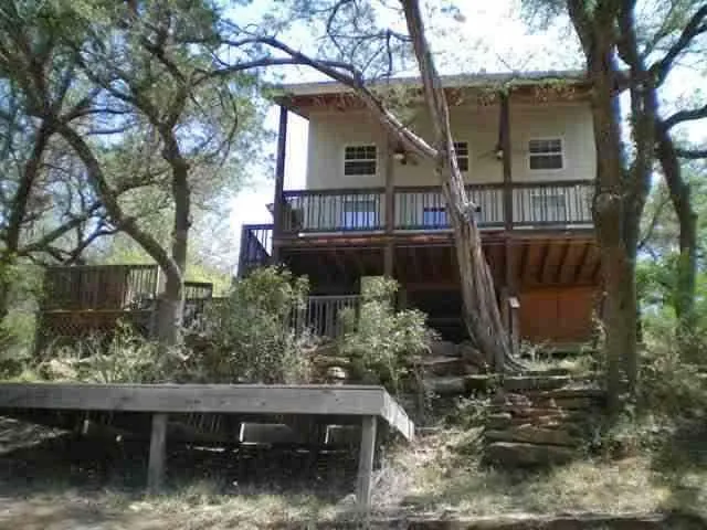 Efficiency cabin nestled in the trees at Lake Buchanan. Wonderful upstairs deck overlooking the cove with another deck/hot tub on the side. Very private setting- feels like you're in Colorado. Lake is low now but still great get away home.