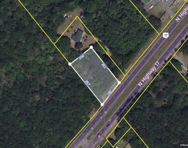 Nicely shaped 1 acre lot with great road frontage on Hwy 17. Perc test has been scheduled and will be completed by seller.