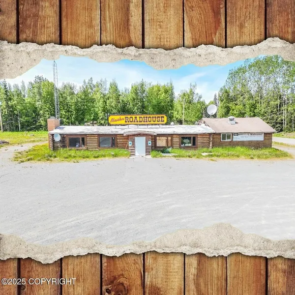 One of the last Alaskan Roadhouses still standing being sold with adjoing parcel. No value in structure; except logs? Renovation is possible as it potentially could be restored. Buyer would have to verify to meet their needs or viability. The Liquor license has been sold. This property could be great location for an RV park or Storage units. There is 1 well and 2-1500gal septics. Highway frontage