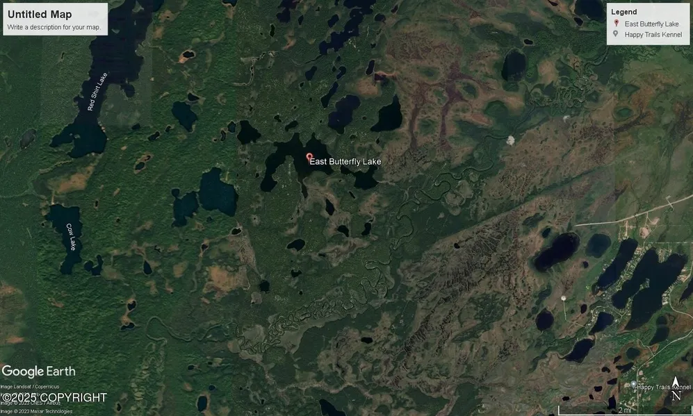 Lakefrontage on both East Butterfly Lake and Cocoon Lake. Awesome location, close to Wasilla and Big Lake with easy snowmachine/atv riding or flying jaunts. Great Southern exposure.