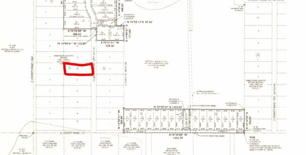 One acre lot in fast growing Greenwood Country Estates! Phase 3 is is located on East County Rd 110 and South County Rd 1059. Approximately 1 acre lot with access to Park Water Co. water district and vinyl fencing on three sides. Buyer will be responsible for cost of water tap and account set up with Park Water Co. Covenants and restrictions, no mobile homes or Barndominiums. Bring your own builder or use the developer's builder. High speed internet is in and more homes are going up daily!