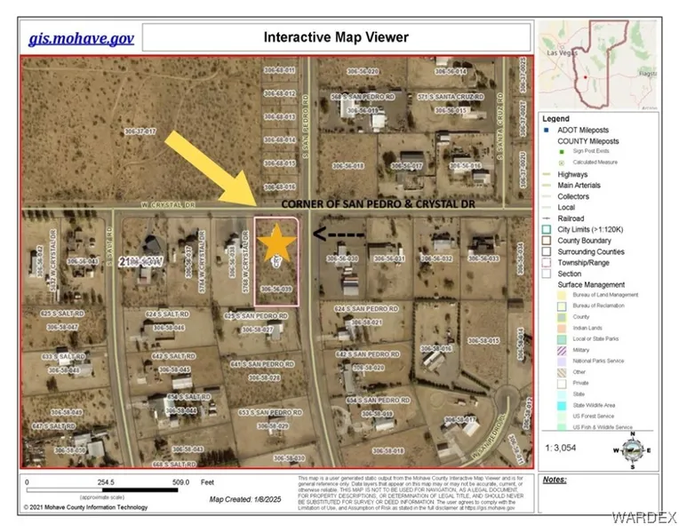 Very nice corner lot in desirable Rancho Verde Estates. Lot is located on the corner of Crystal Drive and San Pedro Road which are both paved. Easy driving distance to Kingman or Bullhead City/Laughlin areas.