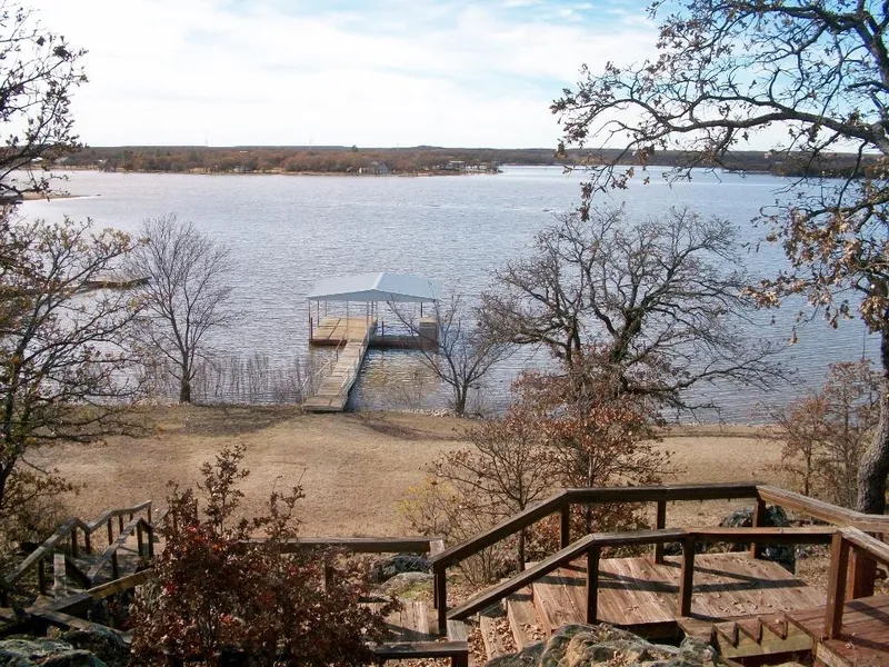 ULTIMATE LAKE LOT - With the best views you have ever seen. Over 1 acre on Amon Carter Lake, covered boat dock, rock retaining walls, asphalt drive, lots of oak trees, huge rock outcroppings, 25 x 35 metal shop building, 30 x 40 carport and a 2 bedroom, 1 bath mobile home. Paved road frontage on Beach Rd.
