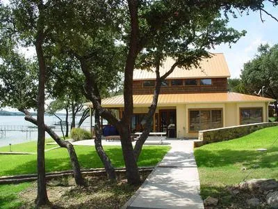 A lovely winding drive leads to this private lake haven. An extra large full acre gentle sloping lot with 200 feet of beautiful private beachfront provides wide open views of beautiful Possum Kingdom Lake. Classic luxury sets off this secluded 3BR/3BA Ranch style two-story. This new architect designed, custom built home features an open and spacious floor plan with vaulted ceilings and a two-story great room. Big south-facing windows and large view deck create enormous lake vistas. Home features a main-level master suite and attractive large bedrooms. Lavish baths have separate shower and dual vanities. Camp style makes sleeping up in the second story loft area tons fun. The custom kitchen features granite counter tops, an entertainment oriented work island, and complete upscale appliance package. Other amenities include hardwood flooring, two story rock fireplace, and professionally designed interior dcor. Attractive copper colored metal roof and detached lakeside veranda. Professionally landscaped lawn with mature plantings and automatic sprinkler system. A private boat ramp and wonderful covered boat dock make lake access a breeze. Nice sandy beach area and retaining wall. Come escape to this private, elegant lakefront retreat!