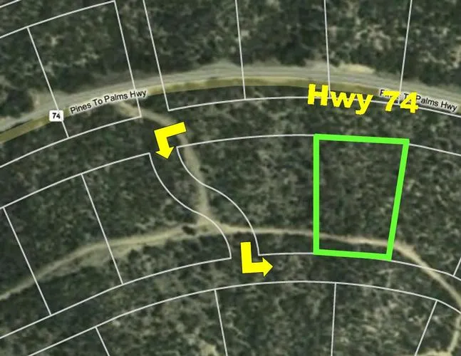 PRICE REDUCED! Lovely Pinyon Flats parcel across the highway from the Pinyon Pines area. Smell the pine trees and get out of the summer heat. Great for commuters with access on 2 sides, paved Hwy 74 and unpaved Metrople. Or buy as an investment, you can't beat the price!