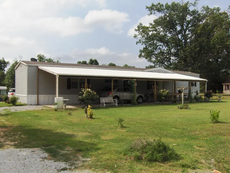 No. 01261 HOME NEAR OZARK NATIONAL FOREST- This 3 bedroom 2 bath like new manufactured home sets on a beautiful landscaped acre. This property has a variety of positive aspects including a 20 minute drive to the White River, only 5 minutes from the national forest, 5 minutes from Blanchard Springs Caverns and swimming recreational areas, and has paved state highway frontage. The home comes equipped with a wonderful back deck with gazebo for entertaining and family gatherings and a huge front porch that can also be used as a carport. All new appliances are included with a washer and dryer and all new curtains for the entire home that are still in the box. The home sets on a solid concrete slab and has a brand new storm shelter. There are thorn less blackberries, raspberries, raised bed gardens, and a variety of flowering shrubs perfect for every gardener. The property has a RV sewer drop for your visiting RVing friends and the home is handicap accessible with ramp and wide doors and halls through out. A 20x26 garage/shop with built in shelving for added storage and a place for the handyman of the home. The 10x10 addition is a utility room with cabinets for laundry needs. The home is in pristine condition with upscale interior to include crown molding, kitchen island, pine ceilings, ceramic tile, oak kitchen cabinets, extra large master bath, and central heat and air along with back up propane for when the power is out. $95,000.