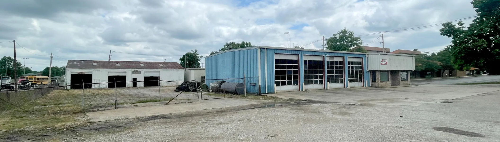 4830 sq. ft. commercial building featuring retail space, office, two restrooms, upstairs storage and shop area with 6 overhead doors (4 to the front, 2 to the rear)