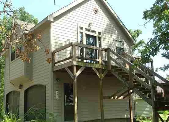Located near the dam, on the deep end of Lake Fork. This one room cabin is the prefect place to stay while you are building your dream house on Lake Fork.The home has hard wood floors, pine ceilings, an antique style bathroom, a wonderful kitchen, and a 2 car garage. Boat house and electric boat lift already inplace. High end homes in this heavily wooded area and plenty of room to build a home and use the cabin as a guest house, or just use this cabin as a weekend place! Secluded in the woods, this is a prime get-away on World Famous Lake Fork!