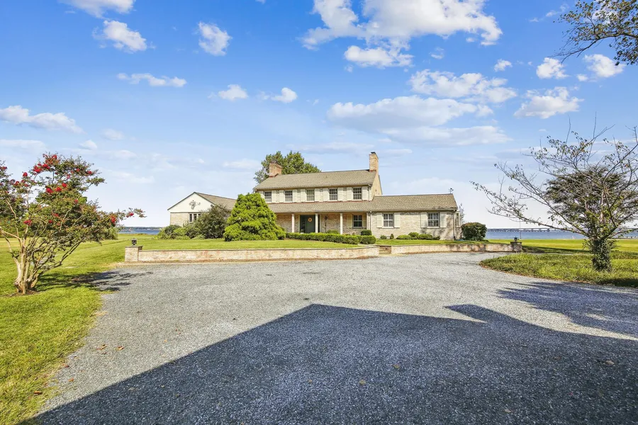 Nestled on over 2.6 acres of lush, verdant greenspace, River House is a storied Coastal Colonial manor offering panoramic views of the Choptank River with 385' water frontage on Marylands Eastern Shore. The expansive front porch offers plenty of room for kicking back after a long day. Inside, explore 4,096 square feet of hardwood floors, endless windows, coastal-casual rooms with warm hues, and built-in stowage throughout. In the updated kitchen, prepare meals for entertaining guests using granite countertops, high-end appliances, and a walk-in pantry. When the weather is chillier, stay cozy in the study/library with a wood-burning fireplace and wet bar. Family or friends are never far away, as 4 bedrooms, 3.5 baths in the main house and 1 bedroom, 1 bath in the carriage house provide more than ample respite and accommodation. A first-floor primary bedroom with newly remodeled ensuite, featuring a gorgeous vintage clawfoot tub offers peace and relaxation at any given moment. Minutes from local crab houses, boutique shops, eateries, festivals, golf, and more, this tranquil retreat combines the ease of shore living with the proximity of suburban conveniences.