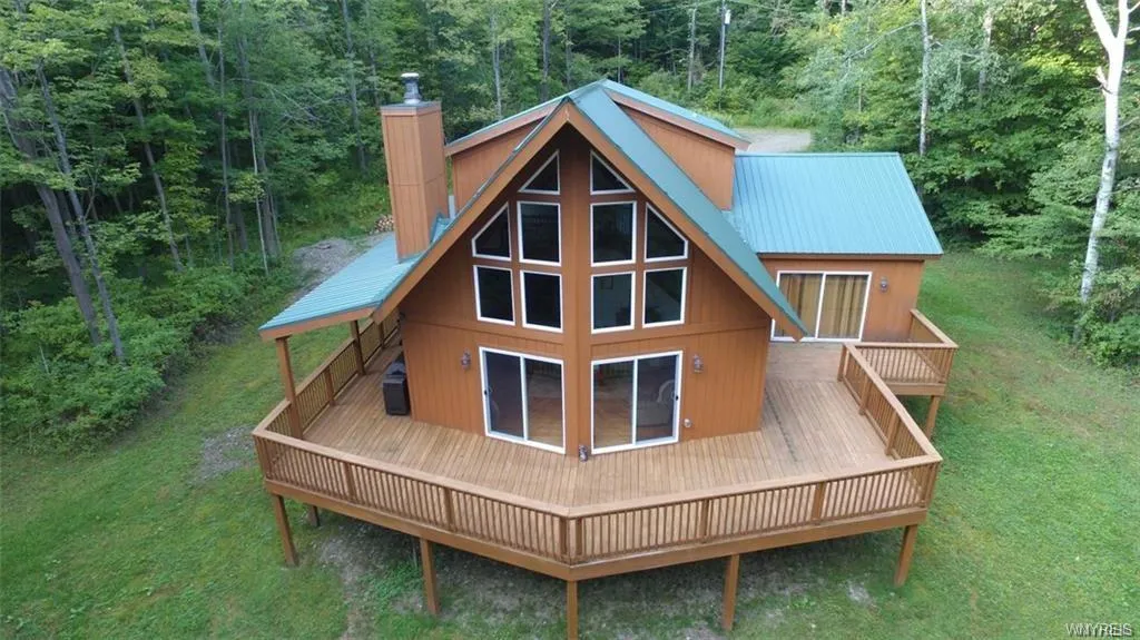 Stunning 3 bed/3 full bath home minutes from Ellicottville village! Nestled in on a large 13 acre wooded lot. Private road access and driveway backing into the woods. Beautiful cedar exterior and well maintained inside and out. Finished basement, wood burning fire place, first floor master bedroom and bath that connects to your large wrap around deck!! Turn key and ready to be yours!
