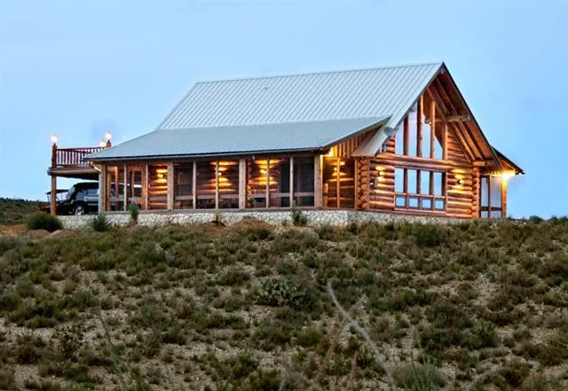 Luxurious home on 2,560 acres in Lajitas!!! Built in 2007 by Southwest Log Homes, this rustic masterpiece offers a million-dollar view of the Chisos Mountains and overlooks the canyons of mill creek. Comanche Creek, Contraband Creek, and Lowes Valley can be explored on the property as well as many arroyos and Black Mesa. The property is accessed off of FM 170 between Terlingua and Lajitas and has a private road and gated entrance. The home is one-of-a-kind and off-grid with phenomenal solar system and water catchment. The home has two screened in porches to encompass the views in all directions, with one porch offering a stone fireplace. The living room has floor to ceiling windows that look towards the Chisos Mountains and the overlook of Long Draw. A great rustic feel with high vaulted ceilings, exposed log walls, stone fireplace, stairway upstairs made with large logs and wood accents, and stained concrete floors. The kitchen has beautiful wood cabinets, granite counters, gas range, black high-quality appliances, and adjoining utility room with washer, dryer, and storage closet. The master suite is downstairs with a spacious bedroom and adjoining bathroom with granite countertops, soaking tub, and dressing table. Upstairs leads to a second bedroom or study with guest bathroom. A large wood deck can be accessed upstairs that offers breathtaking views in all directions. The home has central heat & air, a metal roof, and back-up propane generator. Another bonus to the property is the guest house that includes a full kitchen, living room, 2 bedrooms, and bathroom. Perfect for guests to stay in and still be able to enjoy the same luxuries and views that the ranch has to offer. A 20x30 metal building hosts more space for tools, hobbies, or storage. The property is powered by a state-of-the-art solar system. The Mula Osa Ranch includes four sections of land of which host tons of wildlife, birds, rocks, fossils, and plants. Great dream home or hunting cabin with plenty of space for exploring and recreation. Only qualified and serious buyers please. Call Ginger to schedule a showing.
