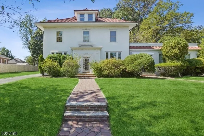 Timeless elegance meets modern comfort in this exceptional South Orange home in the historic Tuxedo Park enclave, just moments from South Orange Village shops, dining, and Midtown Direct trains to NYC. Rich architectural details, including beautiful custom millwork, pair seamlessly with modern updates across a versatile floor plan. Formal living and dining rooms showcase beamed ceilings and inlaid hardwoods, while the kitchen offers ample storage and newer appliances and allows for future redesign. Upstairs, find a spacious primary bedroom, additional hall bedrooms, home office space, and updated baths. The lower level adds recreation space with a exercise room, bonus full bath, plus laundry and plenty of room for storage. Rare private in-law/au pair suite has its own entrance, plus updated full kitchen, bedroom, den and full bath offering incredible flexibility. Enjoy outdoor living on the new paver patio which overlooks an expansive fully fenced lawn surrounded by mature trees. Recent upgrades include a Ludowici clay tile style roof, copper gutters, restored chimney, thermal windows by Pella, new central AC on the first floor, updated plumbing and electrical, newer garage doors, new paver walkways, updated baths with Kohler and Moen fixtures and more. Jitney Bus stop is at the corner for easy commuter access to the South Orange train station.