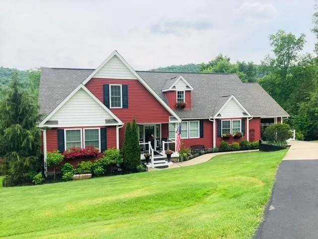 Exquisite one of a kind home with quality design and amenities, located in an upscale subdivision on 1+ acres, you'll love the peace and tranquility of the area. The exterior has beautiful curb appeal & landscaping for all seasons, a pond with fountain, firepit & patio area all with privacy. Upon entering the grand foyer, you will find an elegant living room with gas fireplace, gourmet kitchen & formal dining room. A phenomenal primary suite with a walk in closet like none other & a bath with jacuzzi soaker tub, separate shower stall & double sinks. A second bedroom, full bath & laundry room complete the main floor. The second level consists of two large bedrooms, full bath & living room/family room area plus an additional space that could be used as a den, office or nursery. The basement is like no other offering a theater room, bar area, exercise room plus family room & full bath. An additional 900 Sq Ft of Living Space. Could be used for in-laws or guests. An integral oversized two stall garage with workshop area finishes the basement. The upper garage area has been finished into a sitting area with kitchenette & radiant heat. Every inch of this home is top notch quality!