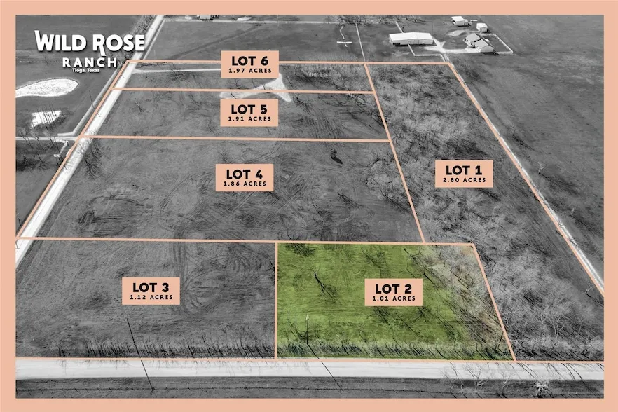 PRICED TO SELL!! HUGE PRICE DROP! OVER 35k UNDER APPRAISED VALUE! A LITTLE OVER ONE ACRE OF READY TO BUILD LAND FOR YOUR CUSTOM HOME OR UPSCALE BARNDOMINIUM FOR UNDER 175K IN GRAYSON COUNTY!! Start Building Your Custom Dream Home Now on this 1.01 ACRE Lot in Wild Rose Ranch in Tioga, Tx! Lot Comes Fully Equipped with Water, Electric and Roads. NO City Taxes, NO MUD, NO PID and NO HOA. Lot is in Close Proximity to Dallas North Tollway Providing Easy Access to Prosper, Celina and Frisco and all the Shopping and Stores Including the Upcoming HEB and Costco. Choose to Either Bring Your Own Custom Home Builder, or On-Site Builder Wesley Farr Homes Can Assist You in the Building Process! BARNDOMINIUMS WELCOME! This 1.01 ACRE Tract of Land is Suited for an Amazing Custom Home with a LARGE Build Site and 235 Feet of Road Frontage. Horses, Chickens, Cows, Longhorn, Bulls, Llama, Buffalo, Sheep and Goats are Allowed! Accessory and Detached Buildings Allowed for All Your Toys, Including Mother In Law Suite. Located in Highly Acclaimed TIOGA ISD! Located in County, You Can Get Started on Building Your Dream Home Right Away Plus Save on Your Property Taxes! Current Tax Rate is ONLY 1.67 Percent!! Wild Rose Ranch is Tioga's Newest Exclusive Subdivision with ONLY SIX LOTS FOR SALE Ranging from 1 Acre to 2.80 Acres. Close to Lake Ray Roberts for All Your Boating and Lake Activity Needs! Contact Agent Stephen Reddy Directly with Any Questions & Available Lots List. Minimal Build and Deed Restrictions. Independent Appraisal Available Upon Request Prepared on 4.06.25 Showing Value as $212,000.