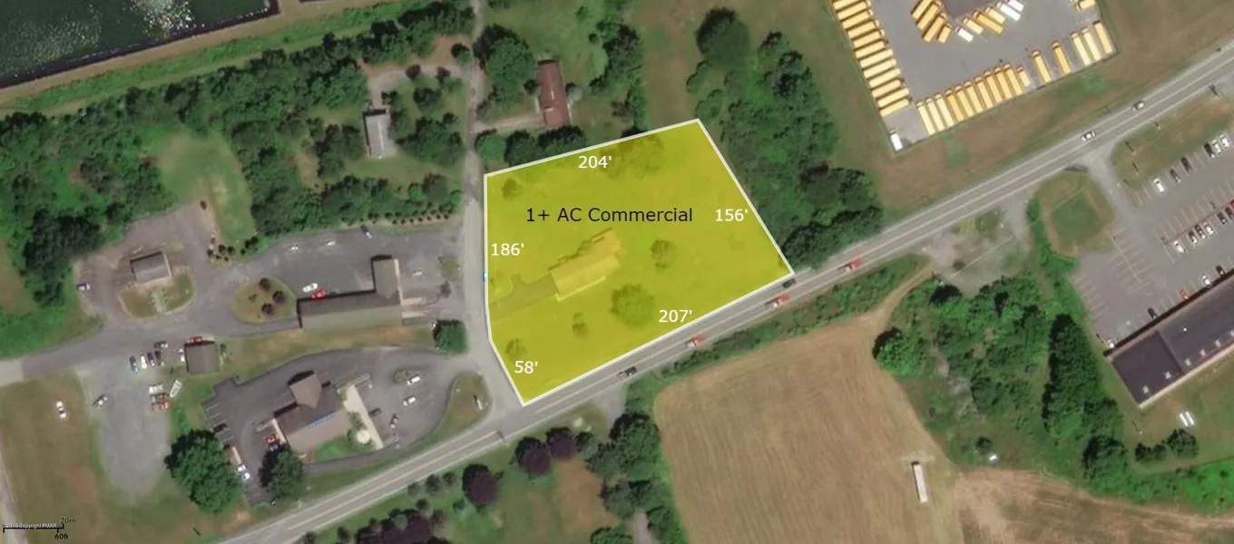 1.03 Acre commercially zoned (GC) re-development site on Route 209 adjacent to PV High School and across from BB&T bank. Served by on-site water and sewer. Corner lot with access from Chestnut St. Ideal for an office/retail business in the center of Brodheadsville. Improved with existing 1,302 SF residence.