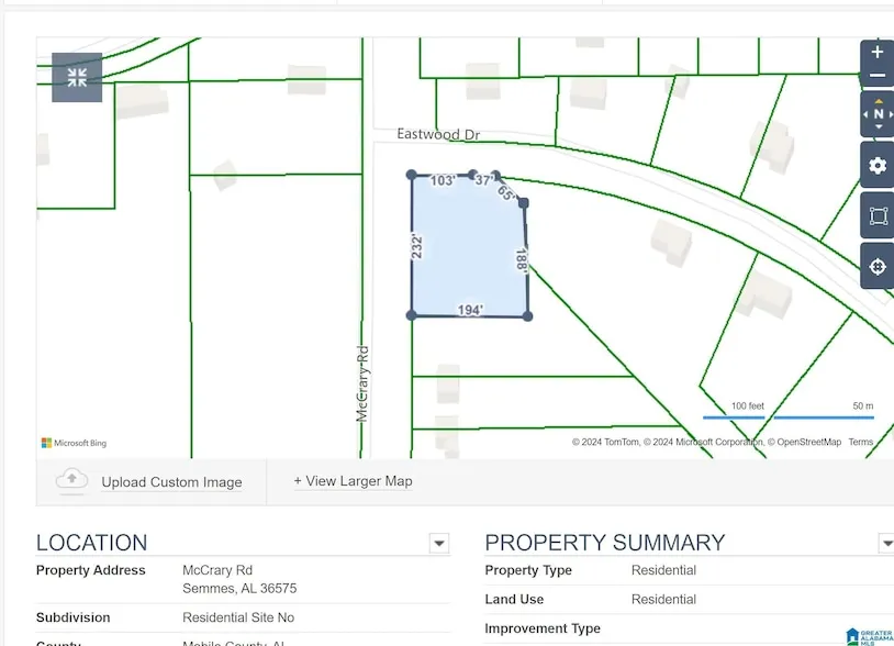 Research Parcel InformationMerge onto AL-158 W/Industrial Pkwy Keep left to continue on AL-158 W Continue on Stone Rd. Drive to McCrary Rd Turn left onto Stone Rd Turn right onto McCrary Rd Destination will be on the left Lot is on the corner of McCrary Rd and Eastwood Drive.