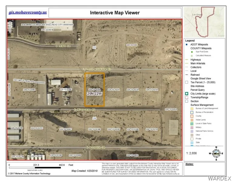 C-3 Zoning makes this a great commercial lot, close to Hwy 95. This lot can be purchased separately or in a bundle package deal with 3 other 1.05 acre parcels totaling over 4 acres (220-15-023A, 220-15-022A, and 220-15-021A) Access to the property is on Black Mountain which is unpaved, however the back side of the property is on E Industrial which is paved. Buyer to verify Sq Ft, Flood Plain, and Utilities.