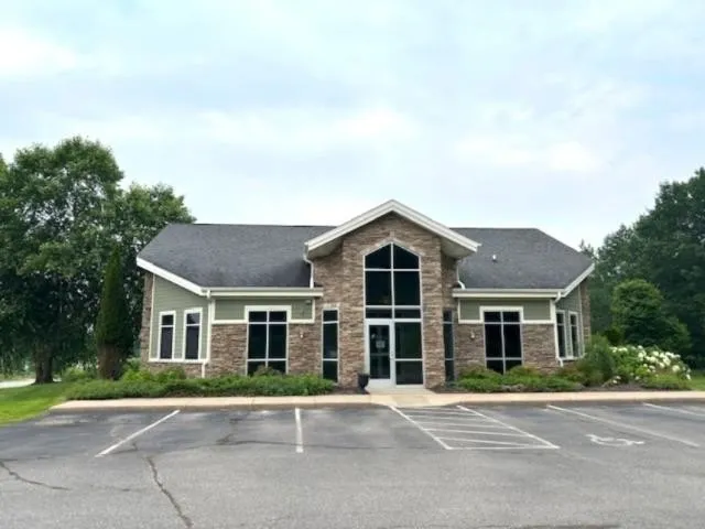 This uniquely designed professional office building is conveniently located near the Central Wisconsin Airport and directly across from Indianhead Golf Course, offering easy access from Interstate 39 and State Highway 153 in Mosinee, WI. Situated on a lot just over an acre, the building features a unique and functional layout, including eight private offices arranged around five semi-private cubicles, a welcoming reception area, and a waiting area. Interior highlights include vaulted ceilings, built-in storage alcoves, and a break room with direct access to an outdoor patio - ideal for employee breaks or informal meetings.