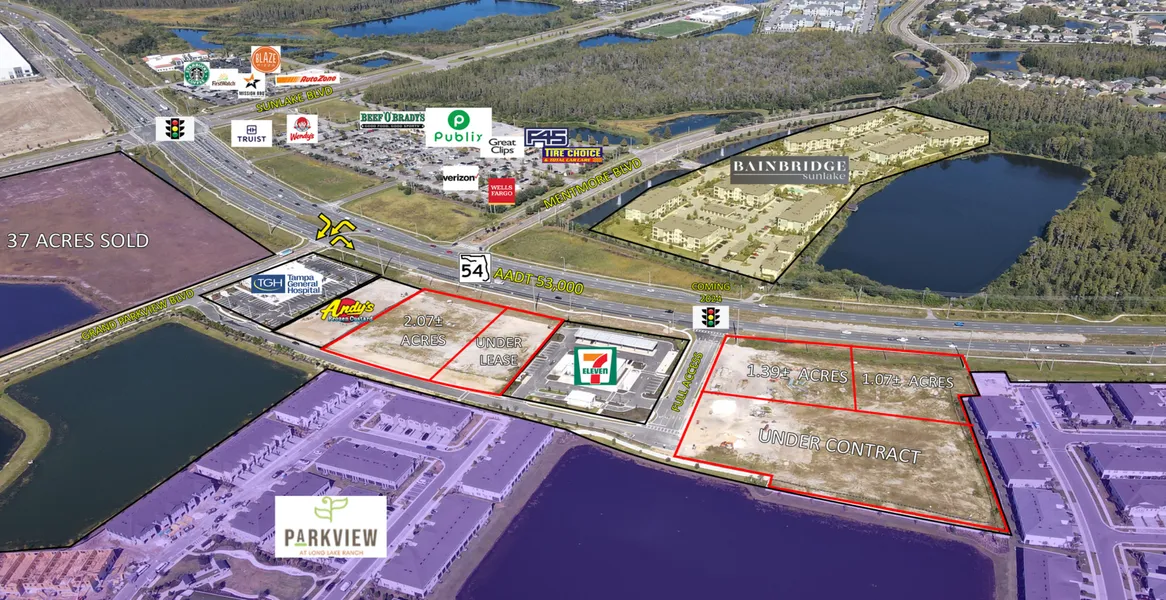 PROPERTY DESCRIPTION - This offering includes the opportunity to ground lease within Long Lake Ranch at the southeast corner of SR 54 & Sunlake Blvd. Long Lake Ranch is a 163 acre development located in Pasco County South of SR 54 consisting of residential, medical, office, hotel, and commercial entitlements. Mattamy Homes is currently finishing construction on the residential subdivision that consists of over 350 single family homes and town houses. There is a traffic signal that has been approved and will be operational in Q1 2024. Tenants in the development include Tampa General Hospital, HCA, Andy's Frozen Custards, & 7-11.