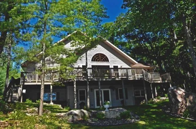 You and your family will certainly enjoy all the comforts that this Northwoods lake home can provide. It features 3 bedrooms and 3 baths, a stone fireplace in the living room, a full walkout basement and attached 2 car garage. The view from the living room is a picture perfect view of the lake and woods. There are hardwood floors and a vaulted pine paneled ceiling giving that warm feeling to the main living , dining and kitchen area. The lot is well wooded and the approach to the lake is level. There is a blacktopped driveway leading up to this quality built home. Here is that lake home you have been looking for and it is close to the town of Minocqua.