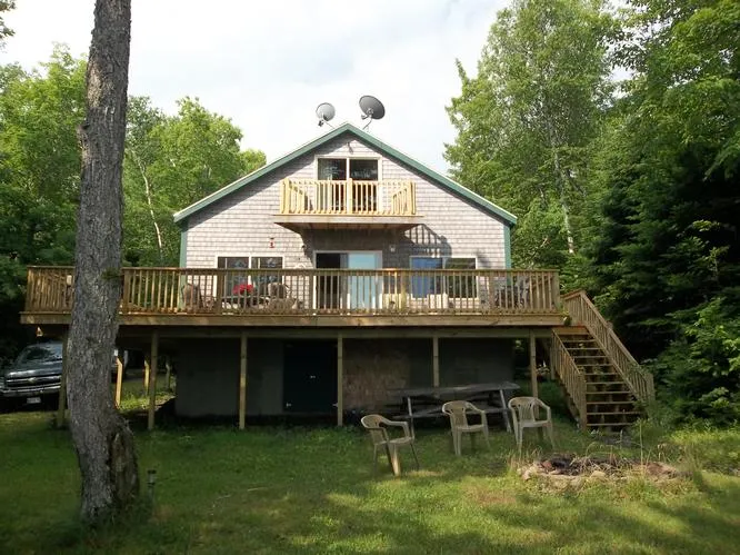 #2071) 1 Roys Way, Perry: A beautiful lakeside retreat, custom built with open concept layout, loft, knotty pine, large windows, full foundation, balcony and wrap around deck. Situated on Boyden Lake with double lot, 200 of frontage and camper hook up for additional guests!