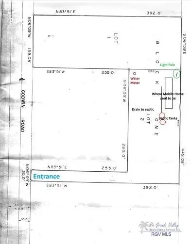 1.15 Acre subdivided tract of land, entry drive on Godwin Road (Harlingen ETJ). Great site for home or commercial, warehouse, etc. Site was once a residential home site, already has septic tank(s), electric pole, water connection for meter (meter may already be on site?). Property is presently in brush. Subject site is an “L” shape tract of land situated directly behind El Muerto Cemetery. Site has a 30' wide driveway X 255' deep. Home site is 137' X 280'