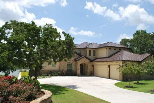 Beautiful custom 4/3 home w/office and approx. 142' WF on 1.16 acres on Inks Lake. Enter thru awesome doors into this 3574 sf w/gorgeous mesquite floors,granite counter tops, 2 fireplaces, central vacuum, wine cooler, 22' ceiling in den, sound system, covered porch & outside kitchen, security system, boat dock w/ lift and two jet ski lifts, 50x30 RV storage & workshop. Gated, nicely landscaped. 4th bedroom could be a media room. Large master with one of the fireplaces on main level with great master bath.