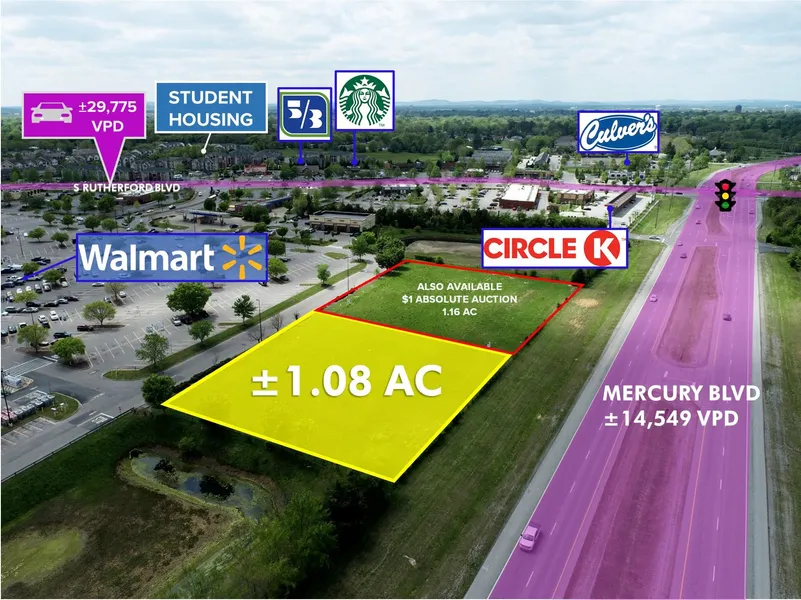 CBRE and RealINSIGHT Marketplace are pleased to present a 1.08 AC land parcel located 2940 S Rutherford Blvd (the Property) in Murfreesboro, TN within the Nashville MSA. This Walmart outparcel offers investors a well-situated development opportunity with highway frontage in a robust and growing market.