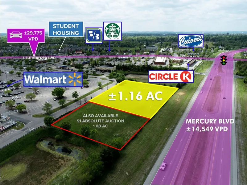 CBRE and RealINSIGHT Marketplace are pleased to present a 1.16 AC land parcel located 2930 S Rutherford Blvd (the Property) in Murfreesboro, TN within the Nashville MSA. This Walmart outparcel offers investors a well-situated development opportunity with highway frontage in a robust and growing market.