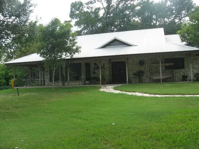 BEAUTIFUL RIVER PROPERTY. 1.168 ACRES LOCATED ON THE GUADALUPE RIVER. JUST MINUTES AWAY FROM LAKE 4-H VIA BOAT! WHITE ROCK HOME WITH METAL ROOF AND WRAP AROUND PORCH. APPROX 2648 SQ FT. OPEN KITCHEN WITH FAMILY ROOM AND DINING ROOM SURROUNDED BY LARGE WINDOWS THAT LOOK OUT ON THE RIVER WITH A PANARAMIC VIEW. MASTER SUITE WITH OFFICE AND MASTER BATH. MASTER BATH HAS LARGE SHOWER AND JACUZZI TUB, LARGE DRESSING AREA WITH 2 SINKS. GUEST BEDROOM HAS ADJOINING BATHROOM WITH A SHOWER TUB COMBO. GREAT STORAGE AND CLOSETS IN THIS HOME WITH LOTS OF PANTRY SPACE AND A UTILITY ROOM JUST OFF KITCHEN. THIS HOME HAS A WALK IN VAULT!