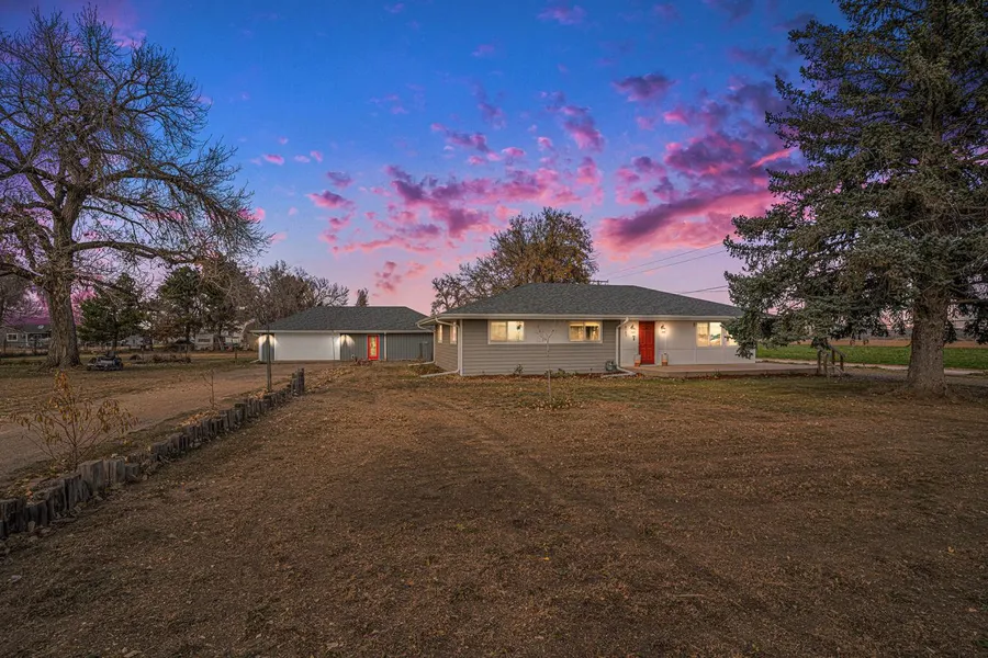 DETACHED HEATED SHOP. Updated ranch on 1.2 acres near historic downtown Johnstown. This well-maintained 3-bedroom, 2-bath home is situated on a quiet 1.2-acre lot with no HOA, offering flexibility for equipment, animals, hobbies, and outdoor use. The property provides both privacy and convenience with close proximity to schools, shopping, and downtown amenities. The home features an updated kitchen with laminate wood-plank flooring, stainless steel appliances, butcher block countertops, tile backsplash, and soft-close white cabinetry. The main living area offers an open layout with abundant natural light. Both bathrooms have modern updates, and the home provides comfortable, functional living throughout. A major highlight of the property is the approximately 1,700 sq. ft. heated detached garage/shop, designed for a wide range of uses. The shop includes epoxy flooring, full insulation, updated wiring, LED lighting, pellet stove heat source, and multiple additional rooms that work well for an office, storage, or hobby space. Exterior features include a spacious front porch, a large back deck overlooking the acreage, a separate storage/garden shed, and a chicken coop that remains with the property. Utility conveniences include city water and natural gas-no propane tank required. The home also benefits from a new roof and gutters installed in 2023. This property offers versatility, significant outbuilding space, and an ideal location near downtown Johnstown-suited for buyers seeking usable acreage with modern updates and excellent shop/garage facilities. May qualify for 100% USDA Financing.