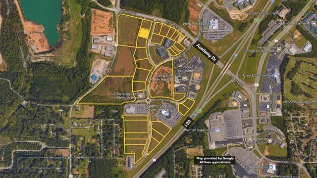 Auctions: 10:00 AM 9/29/2017 Lot 4-2 consists of 1.21+/- acres of prime commercial vacant land off Academy Avenue located on the NWC of I-20/59 in Academy Business Park. Surrounding businesses include multiple hotel chains, Waffle House and car dealerships. 2016 taxes approx. $4,056.05. View property flyer featuring all Bessemer Lots No Buyer's Premium This property is part of an 80+ Property Auction on September 29. CLICK HERE to view all properties auctioning in this event. Broker Licenses: AL Daniel Nelson RE LIC 94692-0; Thomas Barnes AUC LIC 1024; Williams & Williams AUC LIC C-6