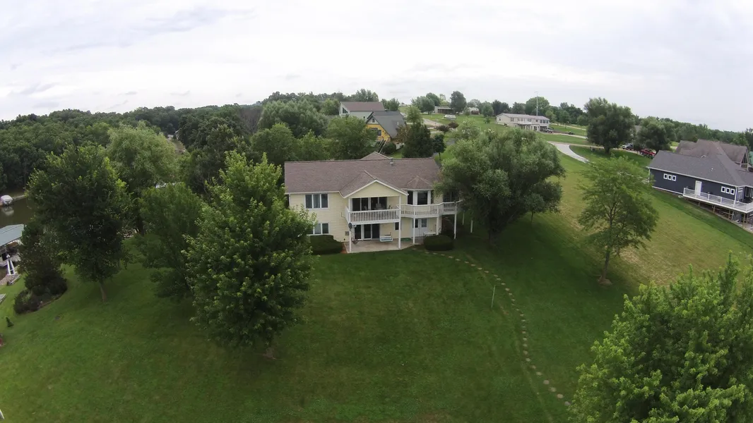 This four bedroom/three bathroom waterfront home is what every lake owner dreams about, starting with a side deck that is perfect for fishing. A 10x10 swimming platform, complete with ladders, sets in front of the beach. The large swimming beach is bordered by a large fire pit area that includes a large cobblestone lake-side patio. The entire beach/fire pit area is highlighted with landscaping blocks. The dream continues with strategically placed benches in the shade of trees with landscaped flower gardens. A decorative paver sidewalk winds its way to the back door of this one of a kind lake home.