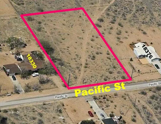 Driving Directions: From I-15 take exit 143 Main St. Turn left on Peach Ave and left on Pacific St. Parcel is on the right between the houses at 18330 and 18376 Pacific. Boundaries in aerial maps are only approximate.