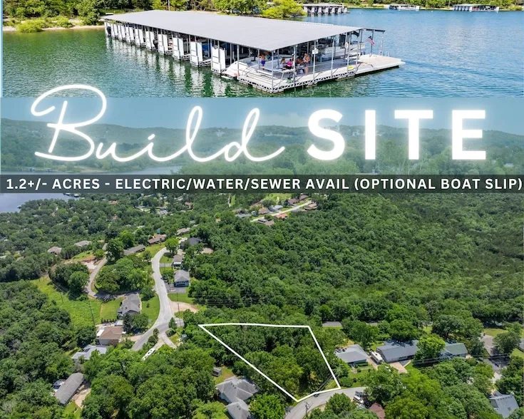 Dream Big in the Heart of the Ozarks! This beautiful residential build site offers well over an acre of peace & privacy in a serene, park-like setting. W/ electric already on site & public water/sewer available (hook-up fees apply), it's the perfect place to bring your custom vision to life. Picture your dream kitchen, spa-inspired owner's suite, sunny year-round sunroom & massive garage to house all your lake toys (and turn a few heads while you're at it!). Don't forget room for a hot tub under the stars. Enjoy wooded views, cool lake breezes, & the relaxing sounds of nature crickets, tree frogs, whippoorwills & owls. Whether you're watching a sunrise or winding down at sunset, this property is your slice of paradise. Location is key! Just min to multiple boat launches for quick & easy Table Rock Lake access, & only approx 7 min to the heart of lake-loving Kimberling City home to Port of Kimberling Marina, seasonal farmers markets, local boutiques, spas, grocery, post office, fun boat-up restaurants & more. Bonus: w/ a permit, you can golf cart around town! Optional 3rd party boat slip available for purchase (add $) to complete your ultimate lake package. Also under 10 min to Reeds Spring Schools & approx 30 min to Branson for world-class dining, entertainment, shopping & outdoor adventure in the Mark Twain National Forest. It's time for a fresh start where every choice is yours & the lake life you've dreamed of is within reach!