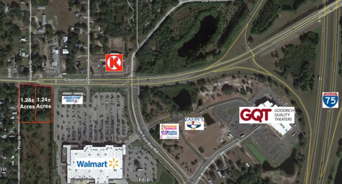 PROPERTY DESCRIPTION - 1.24+/- acre & 1.28+/- acre parcels located at the south east corner of Pine Street and Gibsonton Drive in Gibsonton, FL. The property is directly west of a Walmart Supercenter which creates a large draw to the surrounding retail/commercial businesses.