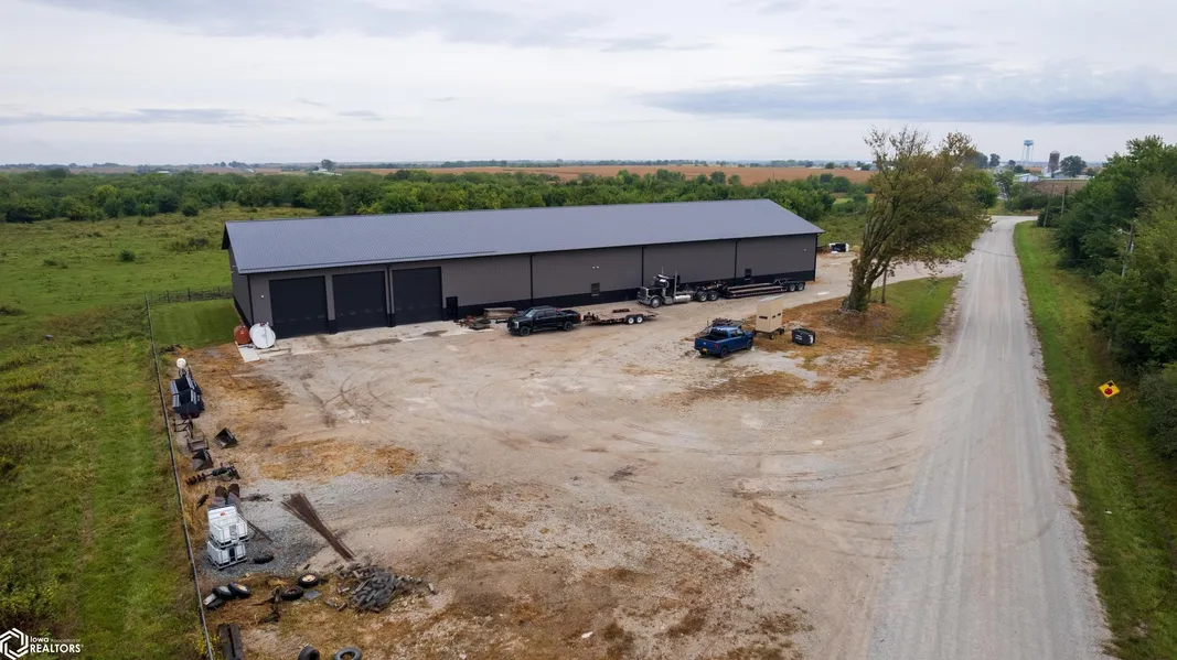 Versatile 60x200 shop with finished living quarters 4 miles north of Albia, Iowa, only 1/8 mile off Hwy 137 offering rare opportunity and income potential. Built in 2021, it is spray foam insulated, heated, and full concrete with 18-ft sidewalls and five automatic overhead doors-two 20x16 and three 14x16-making it ideal for equipment, vehicles, or commercial use. The main level provides approx. 1,400 sq ft of finished space including an office/kitchen, bathroom, storage, and a concrete safe room. The east half of the shop is currently leased at $1,800/month, offering immediate rental income. Upstairs, the 1,600 sq ft one-bedroom living quarters feature a spacious kitchen with a 4x8 insulated window that opens onto a future deck (18-ft header in place), creating a modern layout suitable for full-time living or weekend use. Combined with the office/storage, there is over 3,000 sq ft of finished interior space in addition to the main shop. With its rural setting, excellent access, secure safe room, rental income, and the ability to serve as farm headquarters, business base, or unique live/work setup, this property delivers a rare combination of function and opportunity.