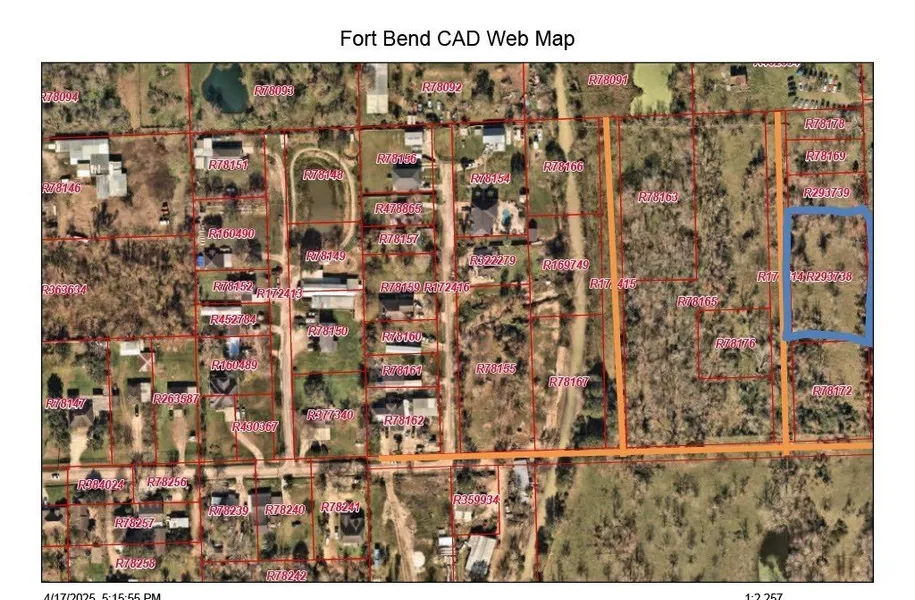 Unrestricted 1.25 acres in Magnolia Place right behind soccer field, Mobile homes are allowed. There is currently no road access to the property but per Fort Bend County Appraisal District, public road easements are in place see photo, Fort Bend county has no plan or date for install. Easy access to FM-521, TX-288 and Beltway 8. Buyer to verify all information.