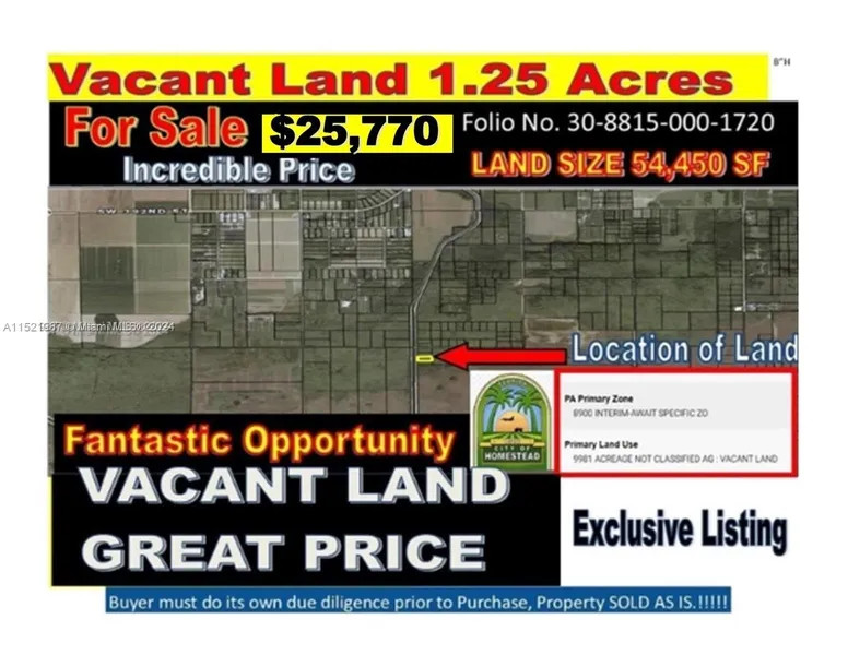 AMAIZING OPPORTUNITY TO BUY THIS LAND OF 54,450 SF (1.25 ACRES) OPPORTUNITY TO BUY THIS LAND FOR A VERY AFFORDABLE PRICE $125,770