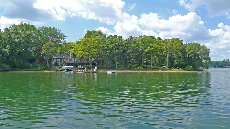 Powers Lake home; main photo shows the 300 of frontage included w/the property. Expansive home sits on 1.26 acres offering 6 BR, 5.5 BA & 3 levels of living space. Living Rm & Kitchen have great views of lake & sliding glass doors that lead to the deck. Great Rm w/soaring ceilings, FP & full bar. Large MA Suite makes up the upper level; sauna & whirlpool tub & deck. Finished LL w/Rec Rm, BR, BA, bar, screened patio w/great lake views. Sandy beach front, pier, gazebo w/hot tub, 1 car GA/guest house.
