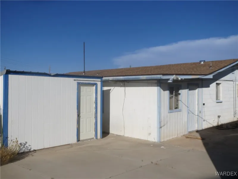 Great opportunity with this commercial property ready for your automotive business including a 3 bedroom house too. Commercial shop complex located in high visibility location in Dolan Springs near US Highway 93. 216 feet if frontage on Pierce Ferry Road that leads to Grand Canyon West. Commercial grade engineered steel building 60 ft. long and 40 ft. wide is insulated with concrete floor and two 12 foot overhead roll up doors. This building is surrounded by concrete on all three accessible sides. Connected is a 30 ft by 30 ft. concrete block building that functions as a machine shop and office. Adjacent 8 ft by 30 ft building houses a shop air compressor and storage. Plenty of outdoor parking and storage on 1.26 Acre lot. Property also includes a 3 bedroom house with 1470 sq. ft. and carport and 100 sq. ft. exterior shed. Utility electric power, city water and septic system.