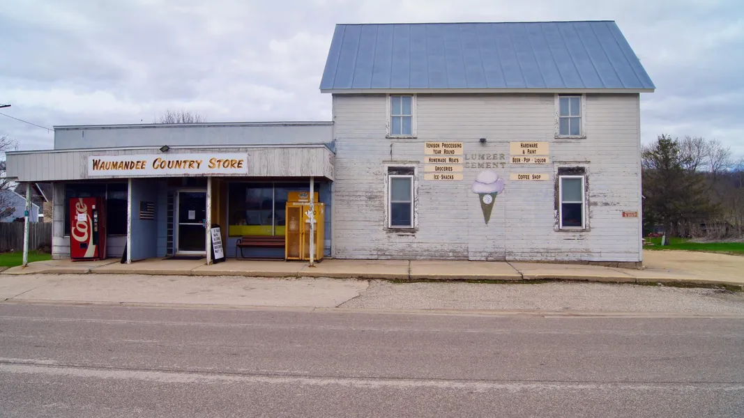 Come check out the historic Waumandee Country Store in Waumandee. WI. The property features a general store setup with a deli, dining hall, large kitchen, restrooms and more. There is a rental/living quarters in the upper level with 3 bedrooms and bathroom. In the back of the building there is a locker plant that was used to process deer. The locker plant portion has a smoker, walk in cooler, cutting room and skinning room. There is also a grease trap behind the building. All equipment, fixtures, appliances, etc. are included with the sale. There is also an older cold storage shed and a 3 car garage with an upper level. Lots of space for ideas! Age of store is estimated.