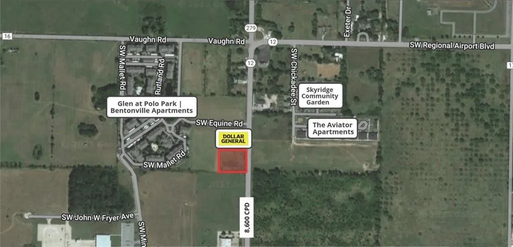 Commercial land ready for development in a rapidly growing area along Hwy 12. Dollar General directly to the north of the parcel. Multifamily & single family developments taking place in the surrounding area. Just south of the Walmart Distribution centers and north of the Northwest Arkansas National Airport. Prime development potential. Water & sewer at street. Major road frontage along Hwy 12, approx. 230'.