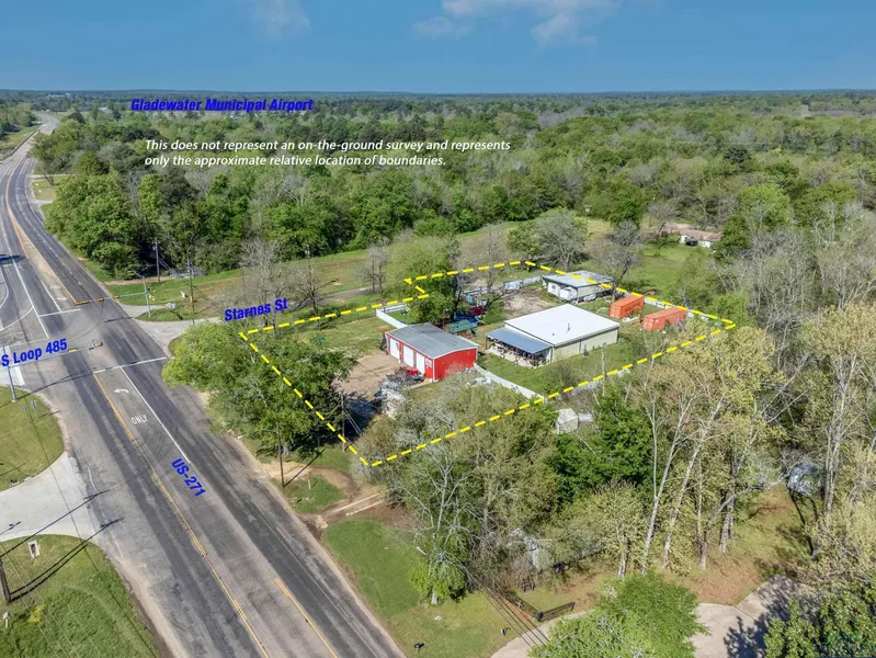 This well-positioned property offers excellent visibility and access at the intersection of US Highway 271 S and S Loop 485—Gladewater’s only major intersection on the south side. Conveniently located near Gladewater Airport. Zoned I-2,heavy commercial, it’s ideal for office-service, warehouse, or automotive businesses. The site includes a 1,500 SF metal office/shop with a three-bay service garage, currently leased short-term ($1200/mo) to “In and Out Automotive”. Features include 14' overhead doors, full bath, and compressed air lines. A second 2,400 SF owner-occupied barndominium-type structure offers two service bays, an 800 SF living area with full bath and kitchenette, central HVAC, foam-insulated interior, and a covered patio. Additional improvements include a security-fenced service yard, two gated access points (one with a rolling gate), light gravel surfacing, RV hookups (rented for $600/mo)with sewer connection, and a small portable office. The property is surrounded by a mix of commercial and light industrial uses and is close to local infrastructure including schools, parks, and city services. With strong traffic counts, solid infrastructure, and strategic proximity to Tyler, Longview, Kilgore, and major highways, this property is well-suited for a variety of commercial uses.