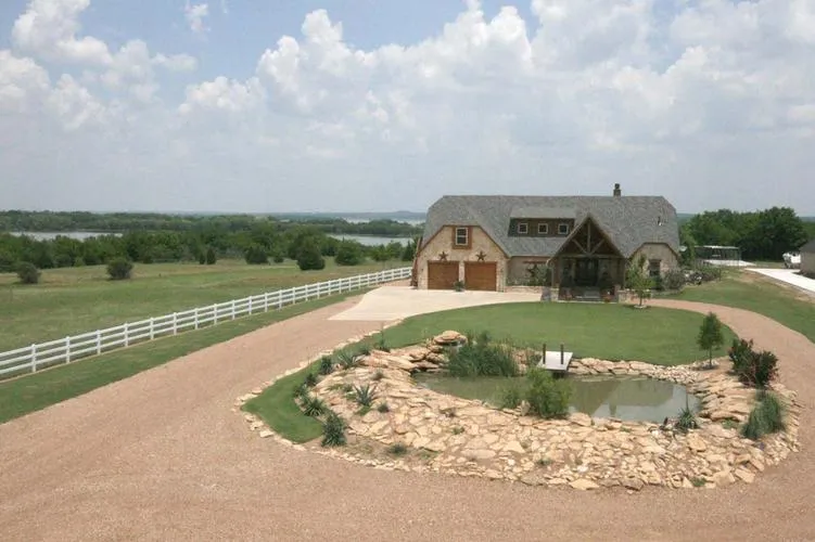 Built in 2006 and located about 100 yards or so from a boat accessible cove on Lake Ray Roberts, the homes eye catching rock and cedar styling offers great views and a two-story design centering around casual living and its lakeside setting. The downstairs layout is very open with a large family room with rock fireplace, a wonderful kitchen with center island, dining area, two bedrooms with a private full bath, a half bath off the mud and utility rooms and a tandem-style 3-car garage with front and rear overhead doors, perfect for boat storage. Upstairs, youll love waking up to beautiful views from a spacious private master retreat with its own outdoor balcony, along with an exercise room, bonus room designed for media with a half bath, and a dual access, one-bedroom apartment with full bath, living area, kitchen, dinette and outside balcony. The home has been very well maintained and includes many special interior features like wood & tile floors, 10-foot ceilings, granite counters, cedar beams, knotty alder custom cabinets, stainless kitchen appliances and energy efficiencies like zoned, 16-SEER air conditioning units.