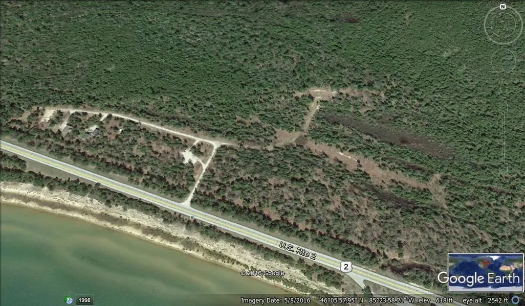 PRICE REDUCED11 Looking for land to build that up north camp, cottage, or home? This is the place! 1.33 acre lot on a private dead end road with a view of Lake Michigan just across US-2. The Lake Michigan frontage south of US-2 , in this area, is in public ownership and the sand beach is a lovely place to relax, swim or wade. The lot is wooded and has underground electric service plus a gravel driveway already installed. The land is dry with a great building site. Either start building right away or camp on the property while you build. Why pay high taxes for waterfront property when you can have access to a 1/2 mile of sand beach for free? Immediately adjacent to this lot on the north are thousands of acres of undeveloped State Forest Lands that you can hunt, hike, and enjoy